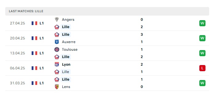 - Phong độ gần đây Lille