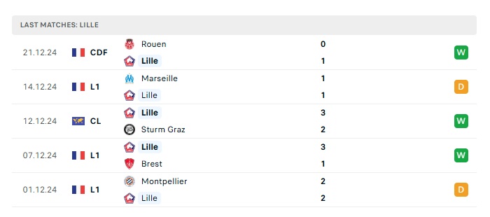 • Phong độ gần đây Lille