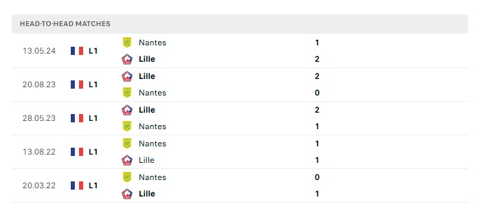 Lịch sử đối đầu Lille vs Nantes
