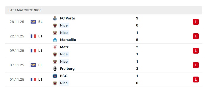 - Phong độ gần đây Nice