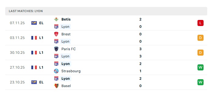 - Phong độ gần đây Lyon