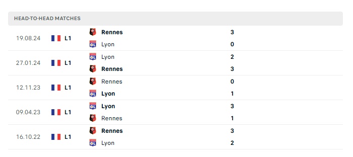 - Kèo tỷ số H2 Lyon vs Rennes: 1-0