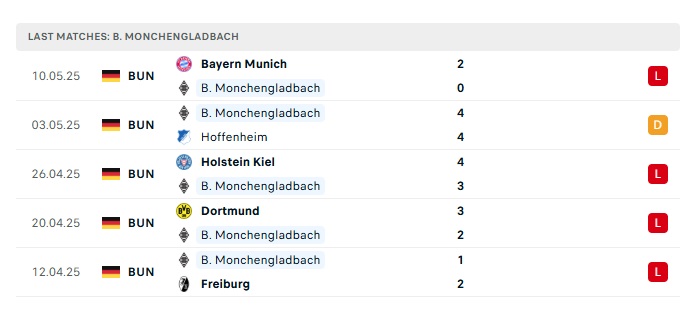 Phong độ gần đây M.gladbach vs Wolfsburg