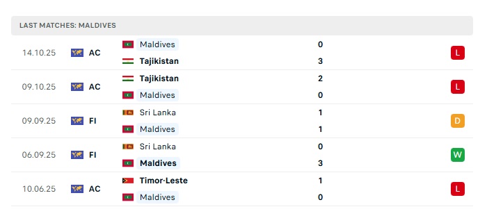 - Phong độ gần đây Maldives
