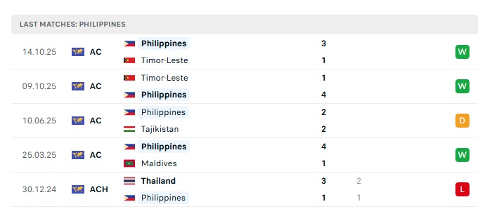 - Phong độ gần đây Philippines