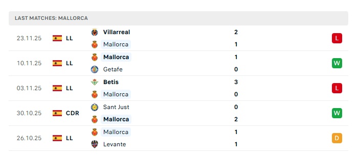 - Phong độ gần đây Mallorca