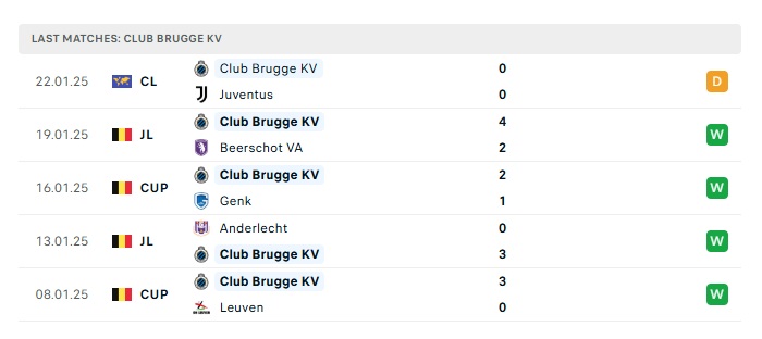 - Phong độ gần đây Club Brugge