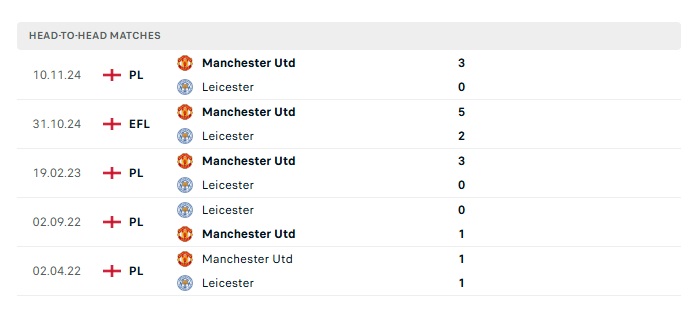 Lịch sử đối đầu Manchester Utd vs Leicester City
