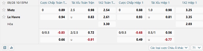 Soi kèo châu Á, kèo Metz vs Le Havre