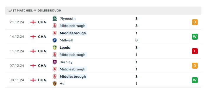 • Phong độ gần đây Middlesbrough