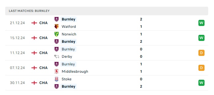 • Phong độ gần đây Burnley