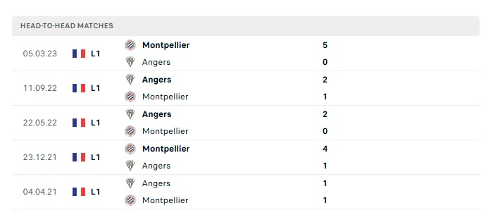 Lịch sử đối đầu Montpellier vs Angers