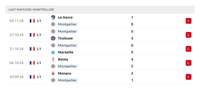 • Phong độ gần đây Montpellier