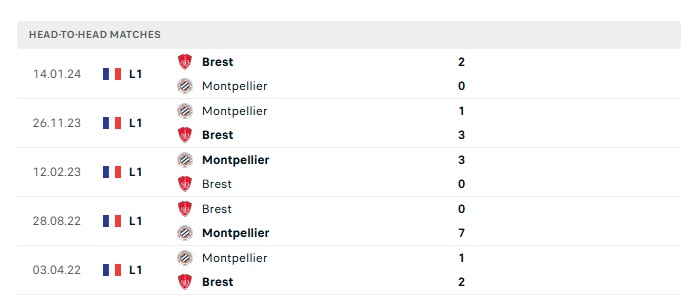 Lịch sử đối đầu Montpellier vs Stade Brestois