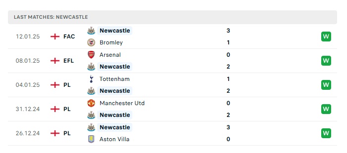 Hiện tại, đội chủ nhà Newcastle đang có chuỗi trận cực kỳ thăng hoa trên toàn đấu trường. Bởi lẽ, các chuyên gia ghi nhận được rằng Newcastle đang toàn thắng 8 trận đấu liên tiếp trên toàn đấu trường. Trong khi đó thì Bournemouth đang bất bại 8 trận gần nhất nhưng chỉ hòa 3 và thắng 5. Như vậy, rõ ràng tỷ lệ thắng trận của đội chủ nhà đang cao hơn hẳn so với đối thủ.