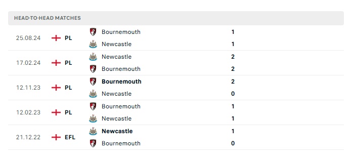 • Kèo tỷ số H2 Newcastle vs Bournemouth: 2-1