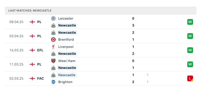 • Phong độ gần đây Newcastle