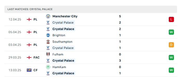 • Phong độ gần đây Crystal Palace