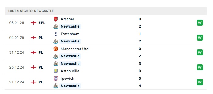 - Phong độ gần đây Newcastle