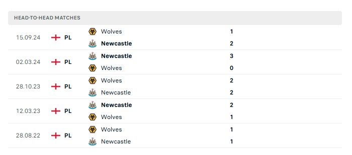 Lịch sử đối đầu Newcastle vs Wolves
