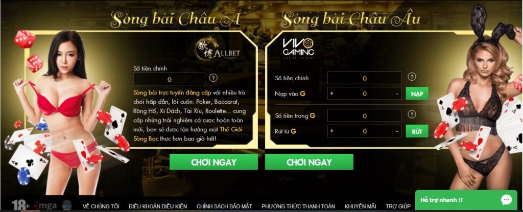 - Trò Chơi ( Baccarat, BlackJack, Roulete, Sic Bo, Tri Card Poker… )