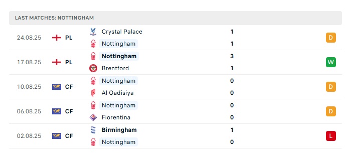 • Phong độ gần đây Nottingham Forest
