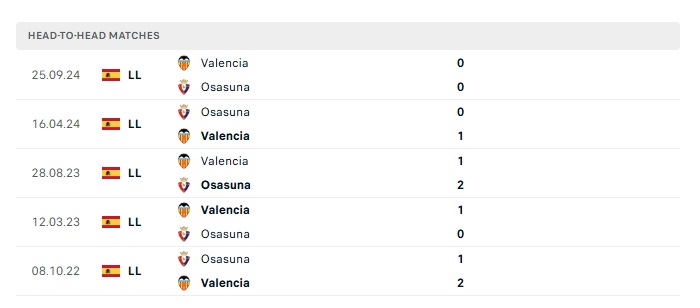 - Kèo tỷ số H2 Osasuna vs Valencia: 0-0