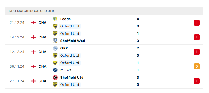 • Phong độ gần đây Oxford Utd