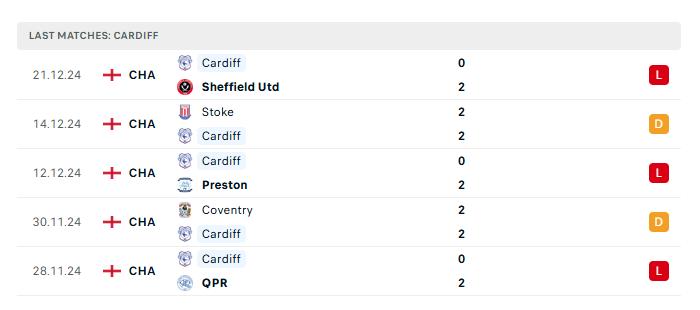 • Phong độ gần đây Cardiff