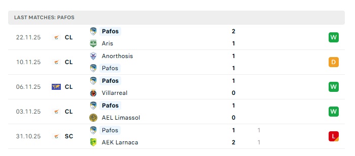 - Phong độ gần đây Pafos FC