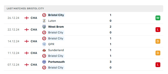 - Phong độ gần đây Bristol City