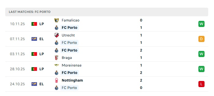 - Phong độ gần đây Porto