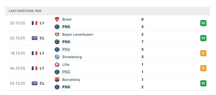 • Phong độ gần đây PSG