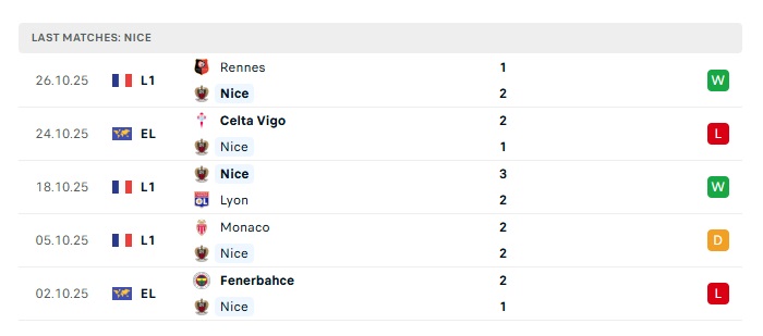 • Phong độ gần đây Nice