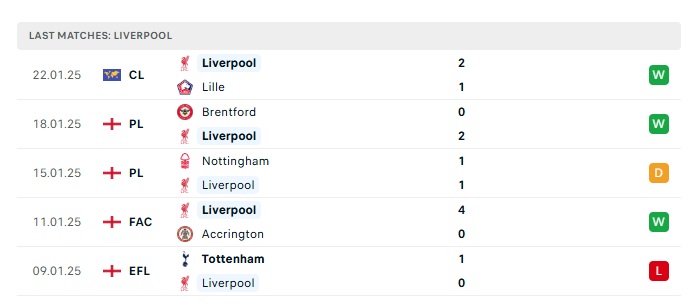 • Phong độ gần đây  Liverpool