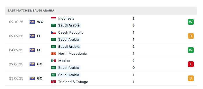 Phong độ gần đây Ả Rập Xê Út vs Iraq