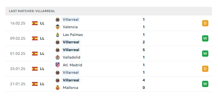 - Phong độ gần đây Villarreal