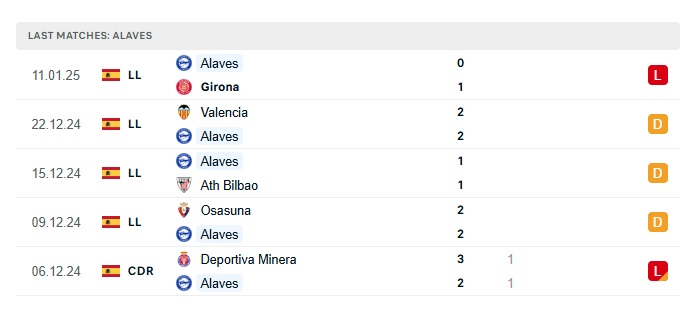 Alaves: Owono; Vicente, Pica, Abqar, Diarra, Sanchez; Guridi, Jordan, Blanco, Martin; Garcia.