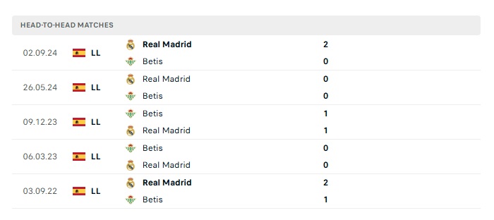 Lịch sử đối đầu Real Betis vs Real Madrid