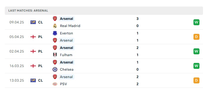 - Phong độ gần đây Arsenal