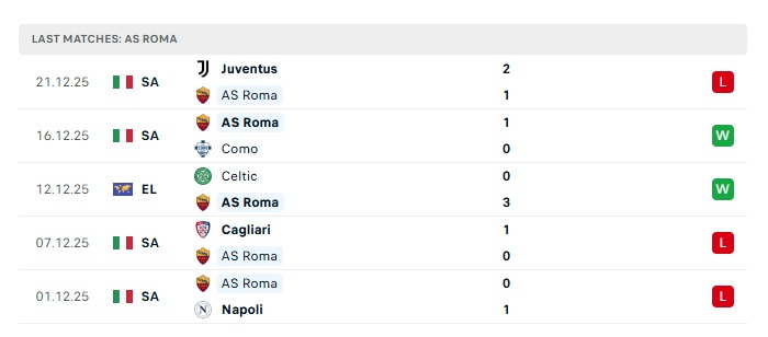 • Phong độ gần đây Roma