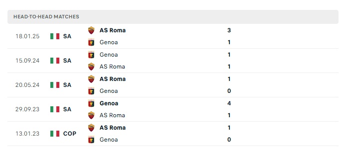 Lịch sử đối đầu Roma vs Genoa