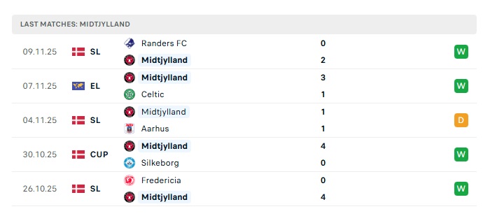• Phong độ gần đây Midtjylland