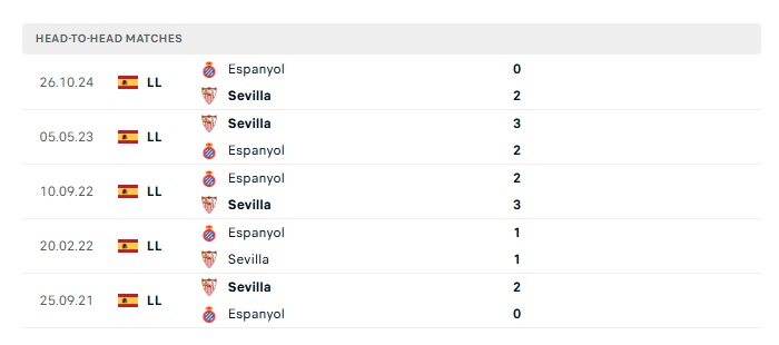 • Kèo tỷ số H2 Sevilla vs Espanyol: 2-0