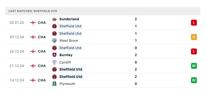 - Phong độ gần đây Sheffield Utd