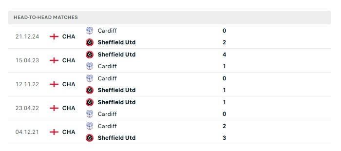 Lịch sử đối đầu Sheffield Utd vs Cardiff City