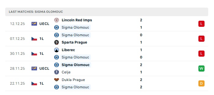 - Phong độ gần đây Sigma Olomouc
