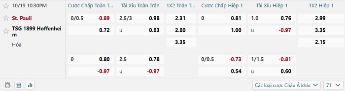 Soi kèo châu Á, kèo St. Pauli vs Hoffenheim