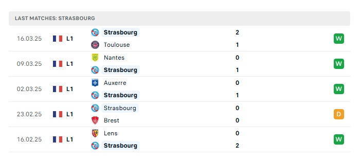 • Phong độ gần đây Strasbourg