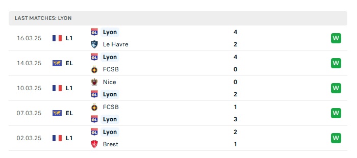 • Phong độ gần đây Lyon